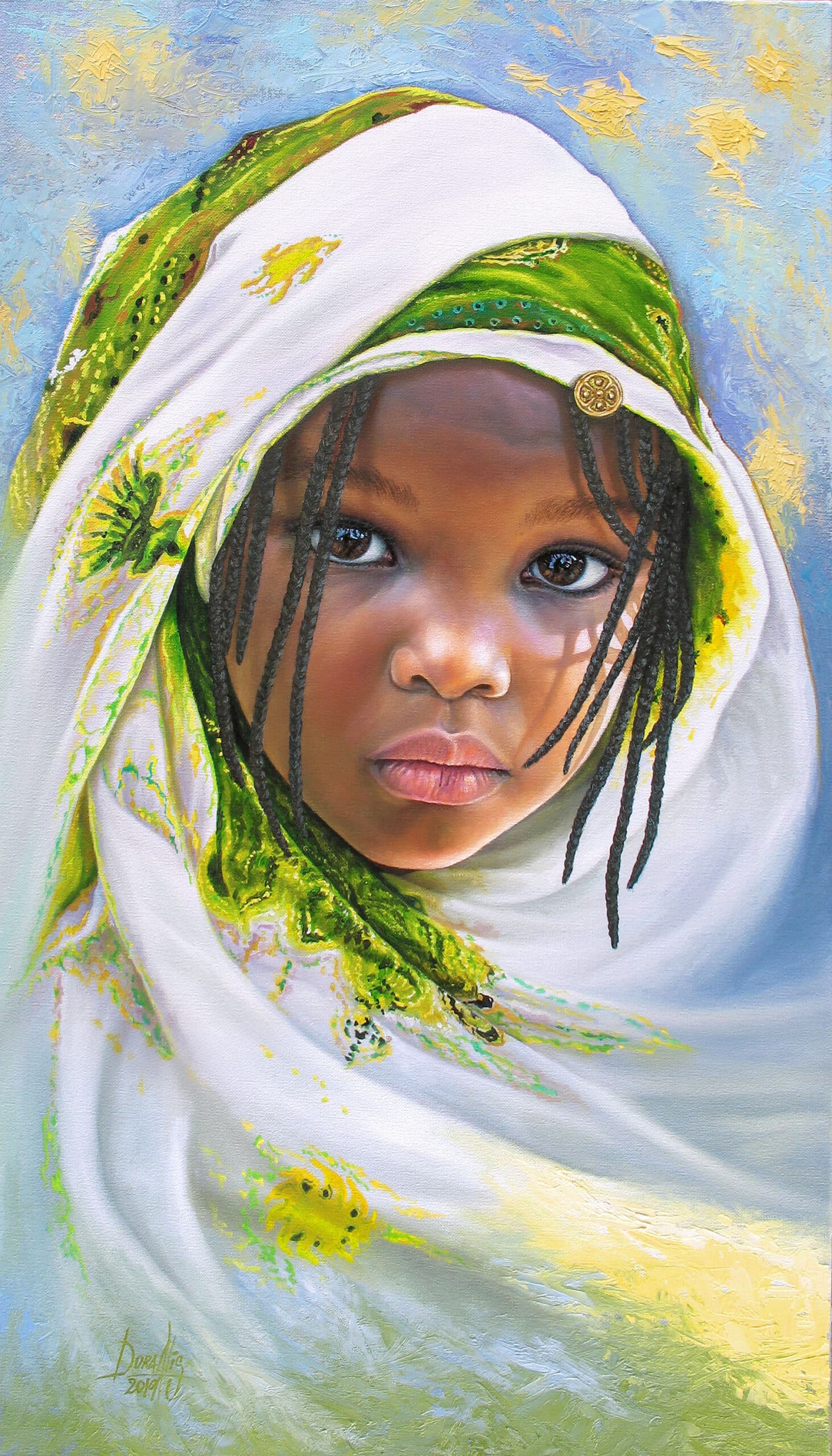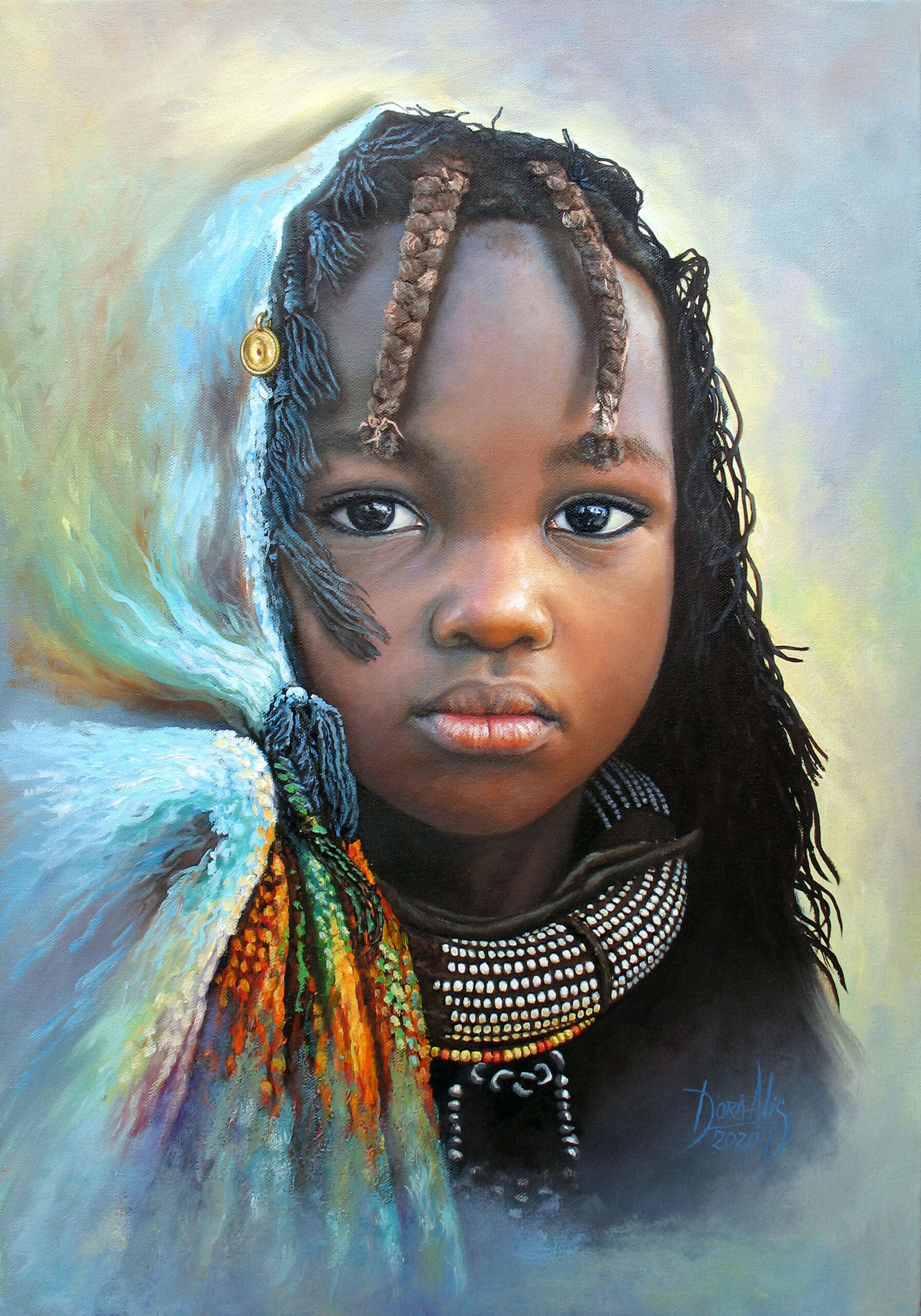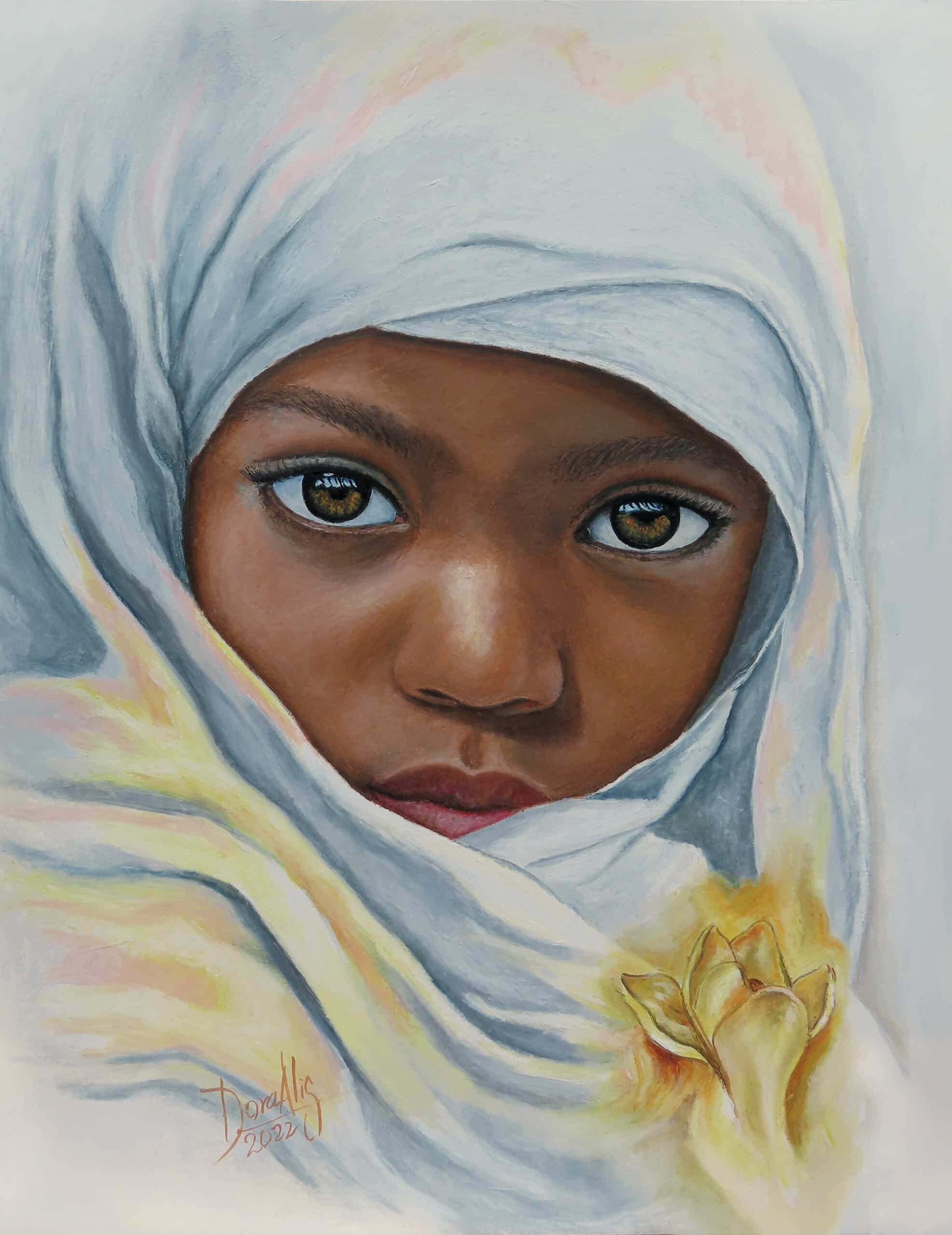 Le thème de la beauté des enfants noirs est la partie la plus importante de son travail. Dora Alis vise à de capturer la beauté des enfants à la peau foncée à l’aide de différentes techniques de peinture.