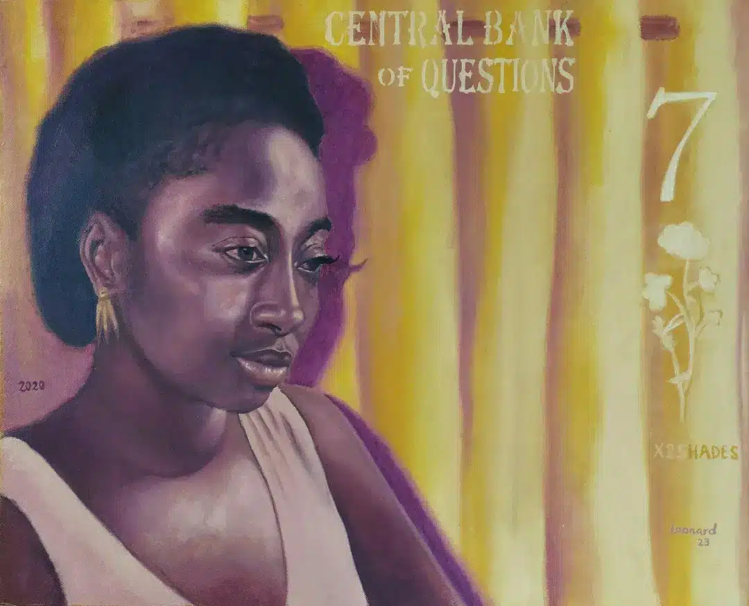 Né en 2000 dans l’État de Lagos et originaire de l’État de Cross River, Leonard n’a pas bénéficié d’un véritable mentorat à ses débuts. Sa première immersion significative dans le monde de l’art a eu lieu lorsqu’il a intégré le cursus dont il rêvait : les arts visuels à l’Université de Lagos. Principalement peintre, il puise son inspiration dans les questions — celles qui conduisent aux décisions, aux actions et à la quête de réponses — mais aussi dans son environnement, sa foi et sa vision d’une société plus lumineuse.