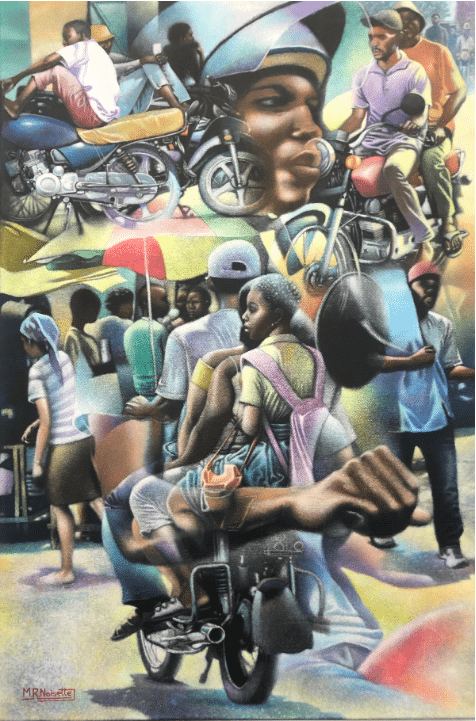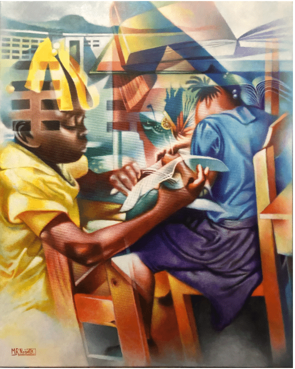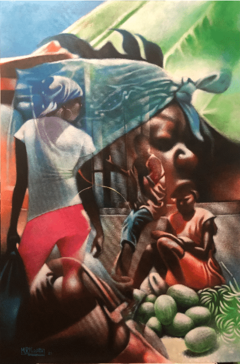 J’ai donc pris contact avec lui, nous avons fait connaissance par téléphone. Michel Réginald m’a, entre autres, fait de son parcours artistique qui a commencé à Haïti, où il a manifesté très tôt un intérêt pour le dessin. Remarquant son talent, ses parents l’ont encouragé à développer son talent, ce qui l’a mené à une formation artistique, puis à du mentorat auprès du peintre haïtien Roland Dorcely.