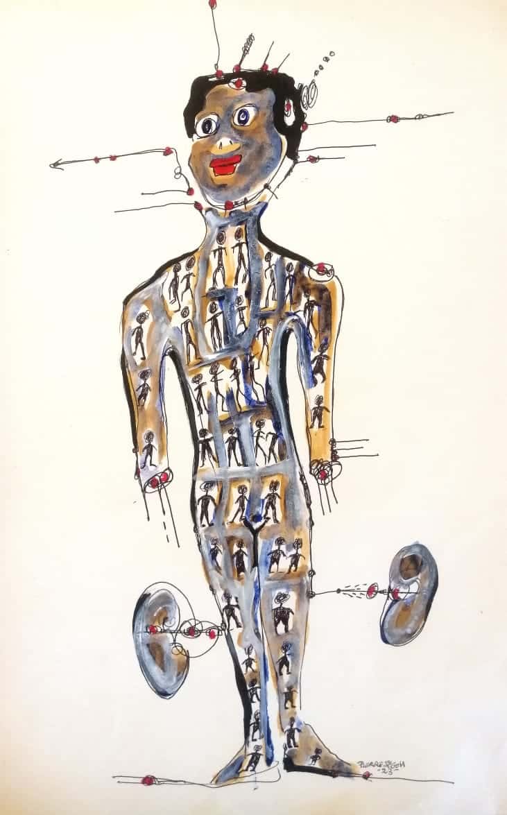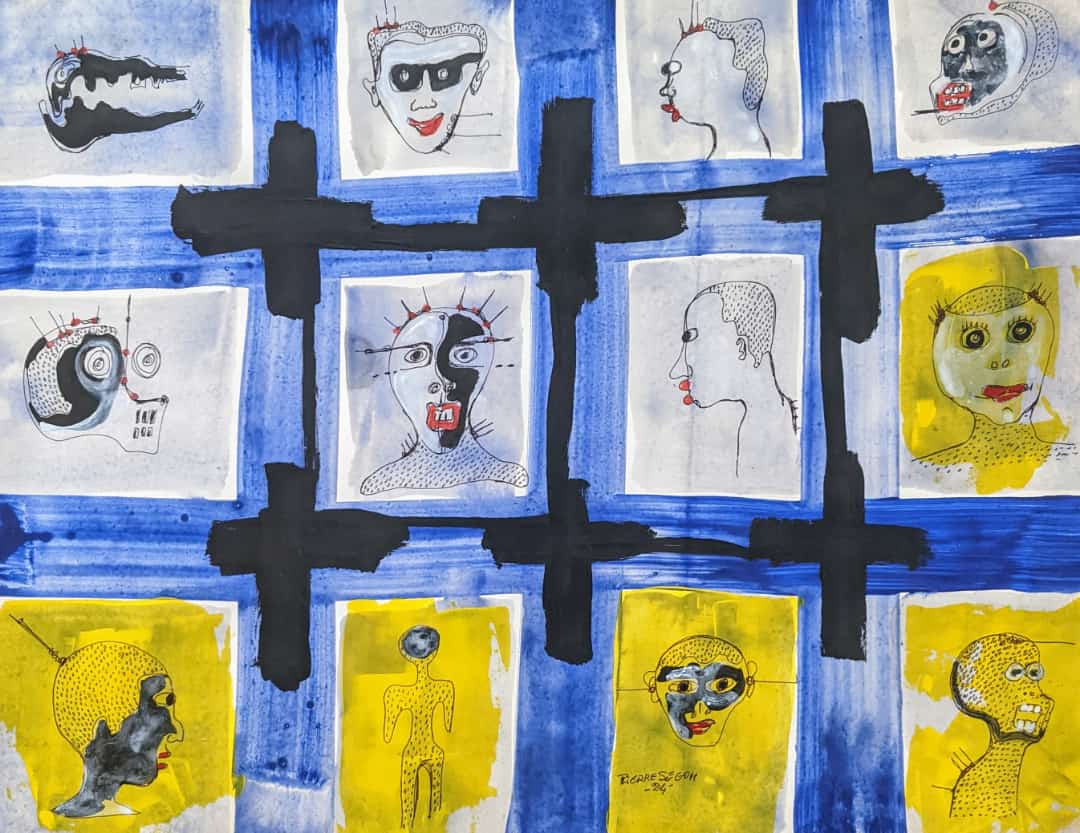 À la recherche d'artistes originaires du Togo, mon pays d'origine, j'ai été ravi de découvrir le travail de Pierre. Son style m'a immédiatement captivé. Au premier regard, j'ai été frappé par sa puissance esthétique, mais plus je le regardais, plus j'avais l'impression d'être en contact avec quelque chose de plus profond. Ses œuvres n'étaient pas seulement visuelles, elles ressemblaient à des énigmes. Chaque œuvre révélait quelque chose que je ne savais pas encore sur moi-même, pour finalement me laisser avec encore plus de questions. C'était comme si son art s'exprimait à travers des énigmes que seule l'âme pouvait comprendre.
