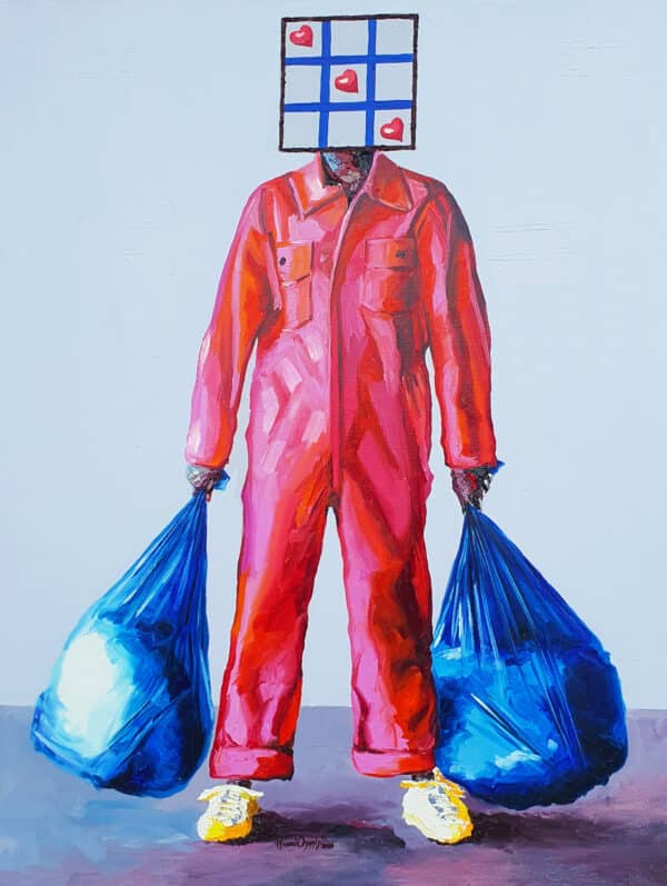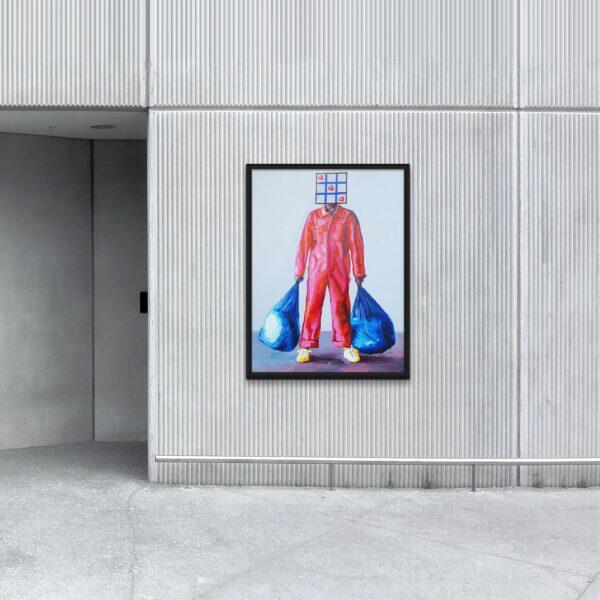 À travers cette imagerie évocatrice, la peinture souligne la relation symbiotique entre l'humanité et l'environnement. L'acte de nettoyer consciencieusement son environnement sert de geste métaphorique de réparation, symbolisant notre devoir collectif d'inverser les dommages causés par le gaspillage irréfléchi et l'exploitation inconsidérée. Le contraste saisissant entre l'arrière-plan propre et harmonieux et les sacs remplis de déchets met en évidence les conséquences de nos actes et nous incite à réfléchir à l'héritage que nous laisserons aux générations futures.