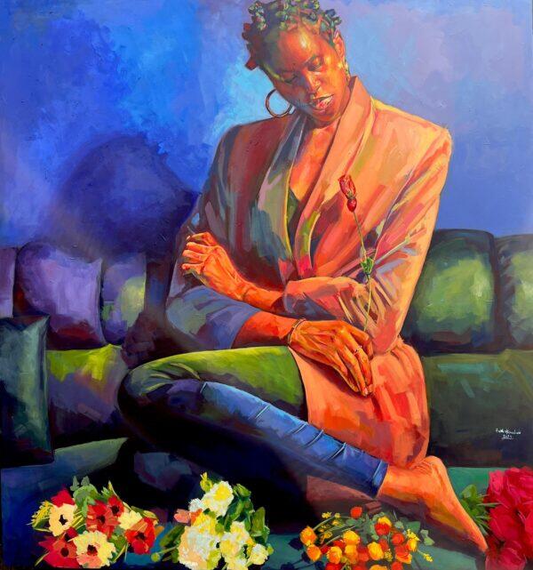 Cette œuvre reflète la culture africaine, en particulier celle du Nigeria - mon pays d'origine - où, en tant que femme (bien que cela puisse s'appliquer également aux hommes) non mariée à partir d'un certain âge, la pression de la famille, des amis et de la communauté commence à s'intensifier. Le mariage est souvent considéré comme l'une des plus grandes réussites de la vie, et cette pression peut amener une femme à prendre des décisions hâtives qui ne sont pas forcément dans son intérêt, entraînant parfois la dépression, le doute et la remise en question de sa réalité.