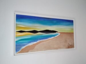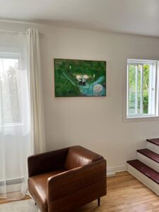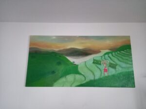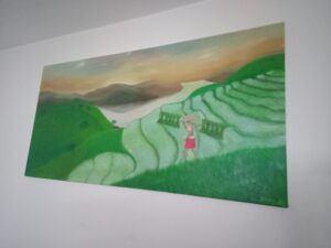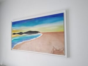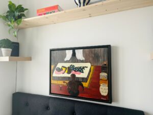 I chose to place it in my guest room, just above the bed. The painting depicts a sleeping woman, and its presence immediately creates an atmosphere of gentleness, calm, and tranquility. It’s exactly the ambiance I wanted for this space — a room where you feel good, serene, almost enveloped by the peaceful sleep the artwork evokes.