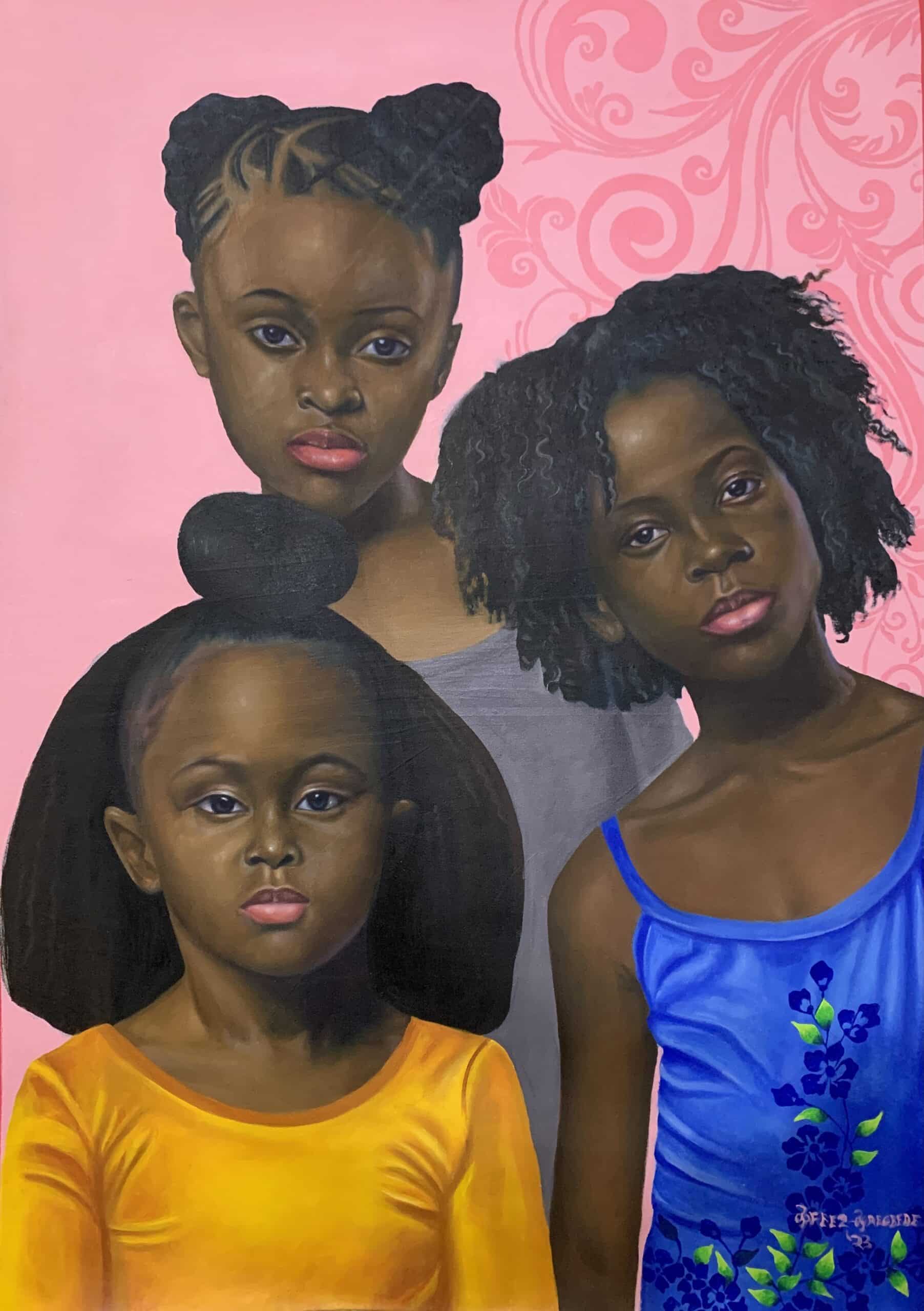 Based in Ibadan, Nigeria, Afeez is a visual artist working primarily in oil and acrylic on canvas. His practice explores identity, memory, and the quiet strength of everyday life, all rendered through bold colors, rhythmic patterns, and an unmistakable sense of emotional gravity. With an NCE from the Federal College of Education in Abeokuta, and now pursuing a Bachelor of Fine Arts at Obafemi Awolowo University, Ile-Ife, Afeez is steadily carving his place in the contemporary art scene. His work has already been featured in international showcases such as the INC Art Fair in Austria and the Swiss Red Cross Gala in Gstaad.