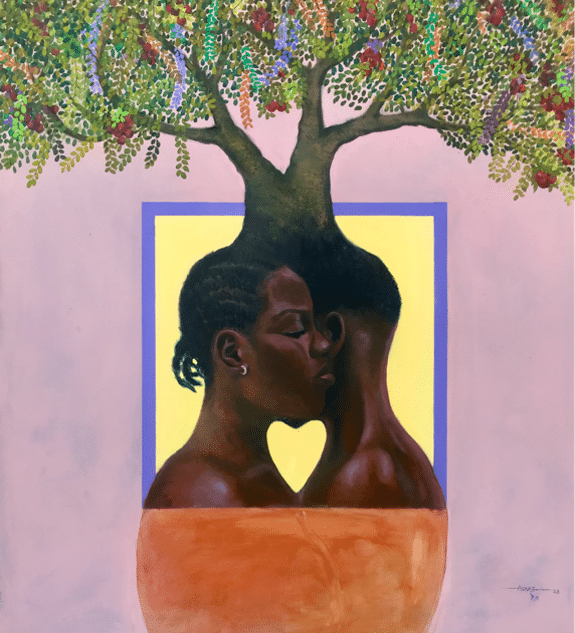 Born in 1992, Philip Koduah Asare is a Nigerian-born Ghanaian visual artist living and working in Lagos, Nigeria. Before painting, he wrote—capturing small details of life in his personal diary, a habit that soon evolved into sketching and, eventually, painting. He studied Fine Art at the prestigious Yaba College of Technology, majoring in painting, and later apprenticed under artist Damilola Opedun. His style blends realism, abstraction, and symbolism, often merging human and plant forms to reflect the interconnectedness of all beings.