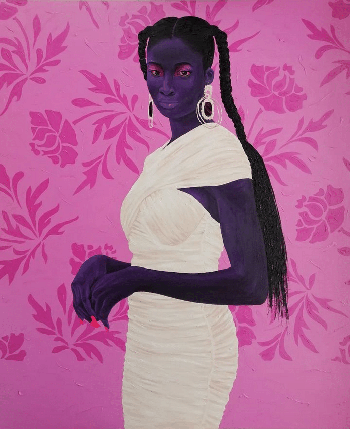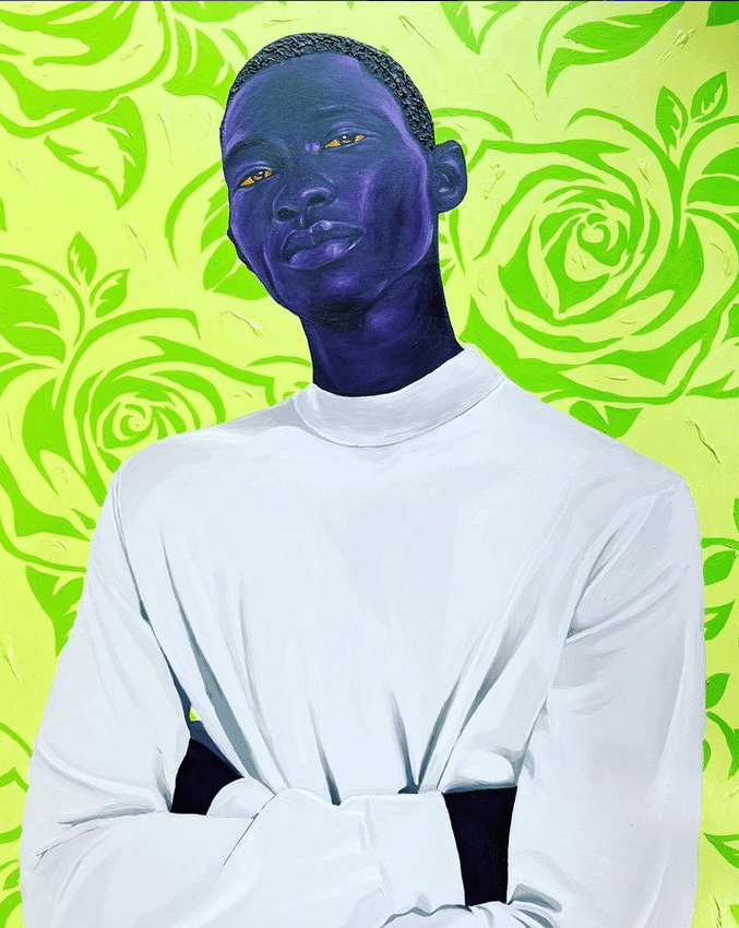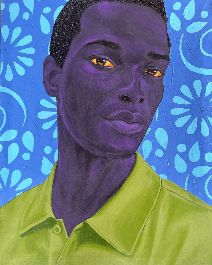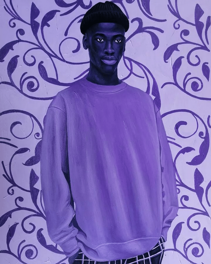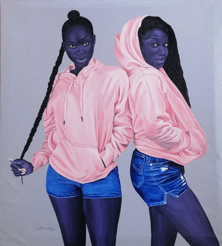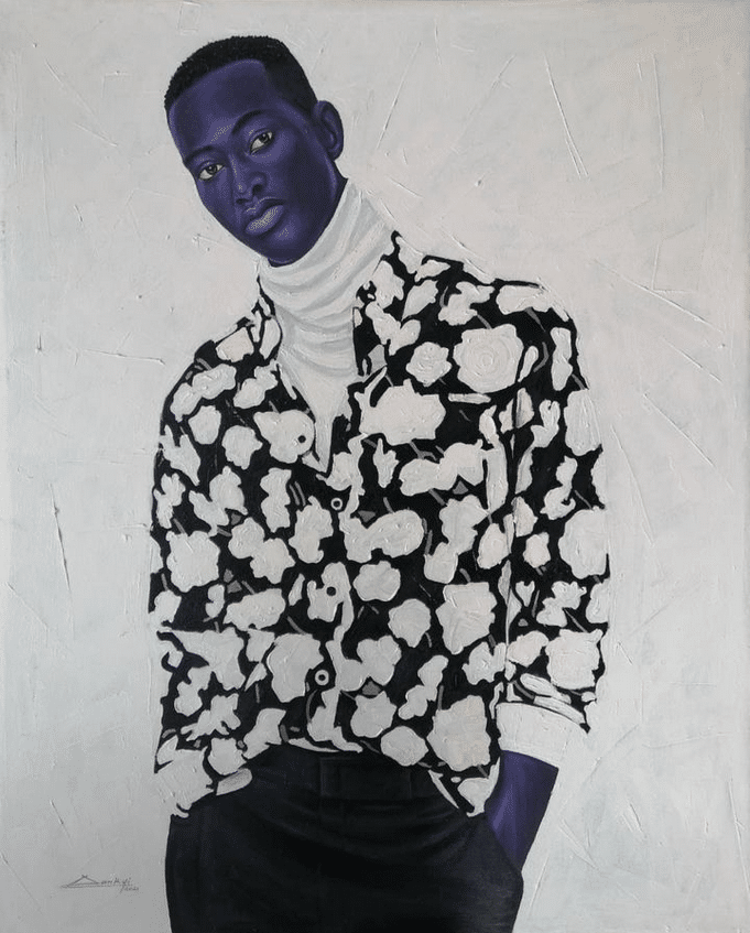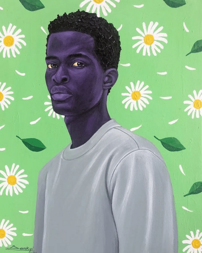 I fell in love with Dankyi’s work at first sight. The models in his work are so full of life and emotion that I want to talk to them and get to know them. The elegance and finesse with which he depicts black skin in shades of purple and blue amazes me and makes me appreciate my skin color even more.