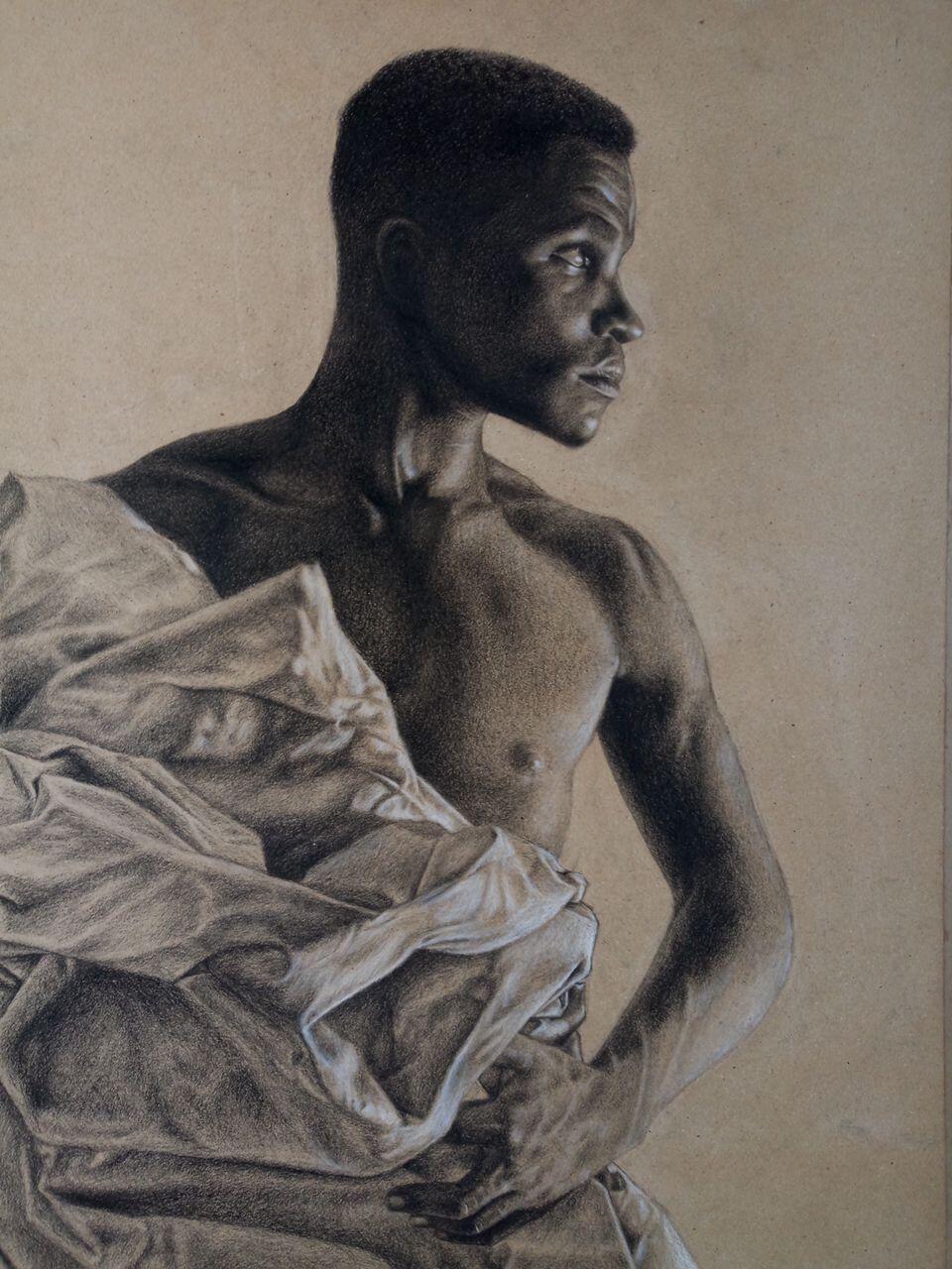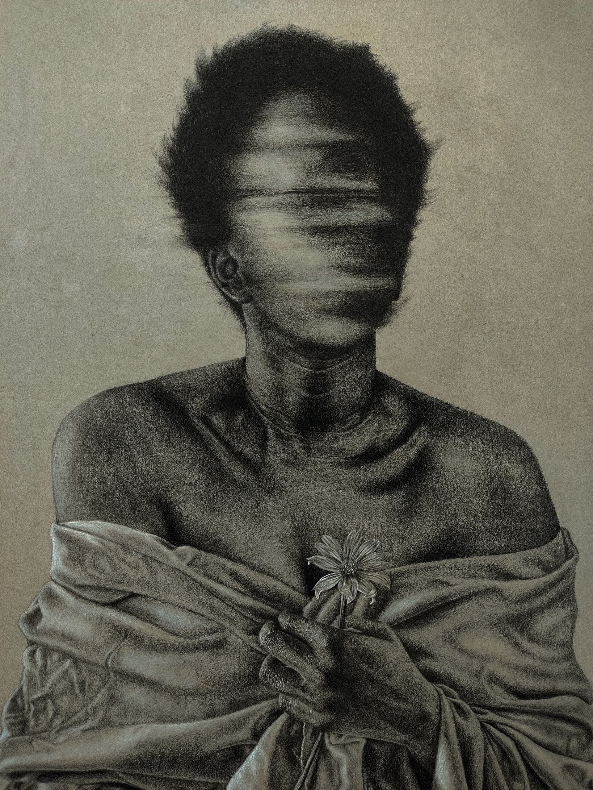 Emmanuel has since developed a signature style influenced by Baroque, Renaissance, and modern expressionist masters. Working primarily with charcoal and oil paint, he crafts deeply introspective pieces that combine striking realism with emotional depth and vulnerability.