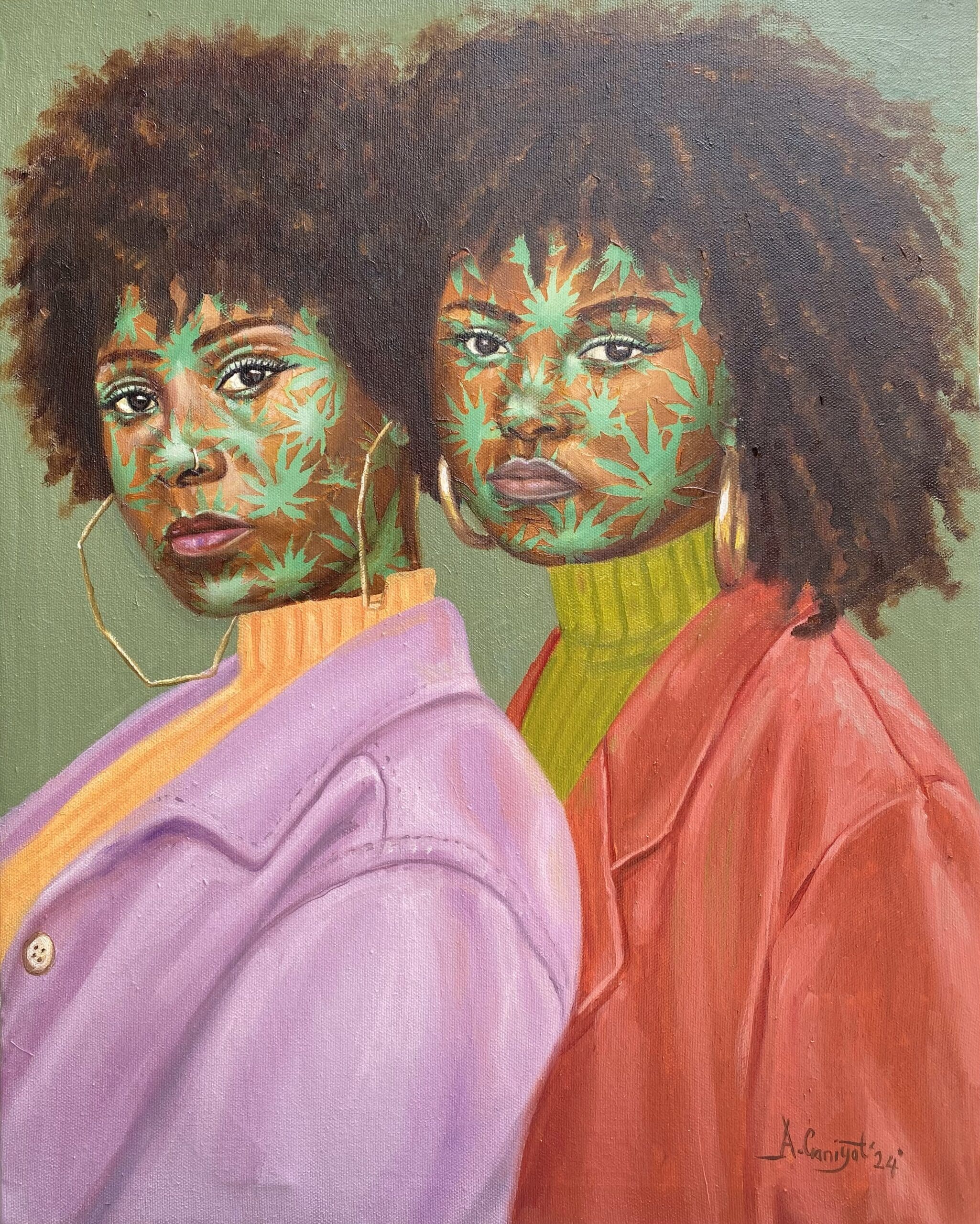 Born in 1996 and based in Lagos, Nigeria, Ganiyat earned both her National Diploma (2017) and Higher National Diploma (2021) from the prestigious Yaba College of Technology. A versatile artist, she explores a wide range of media, including pastel, graphite, charcoal, watercolor, acrylic, and, above all, oil paint—her preferred medium. Her process layers narratives drawn from her life and her environment, often centering on people who have found healing through nature’s gifts.