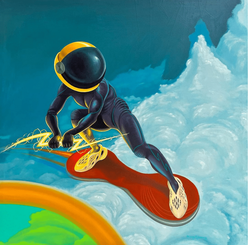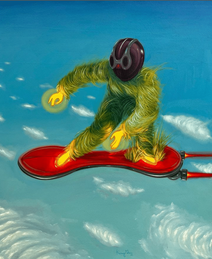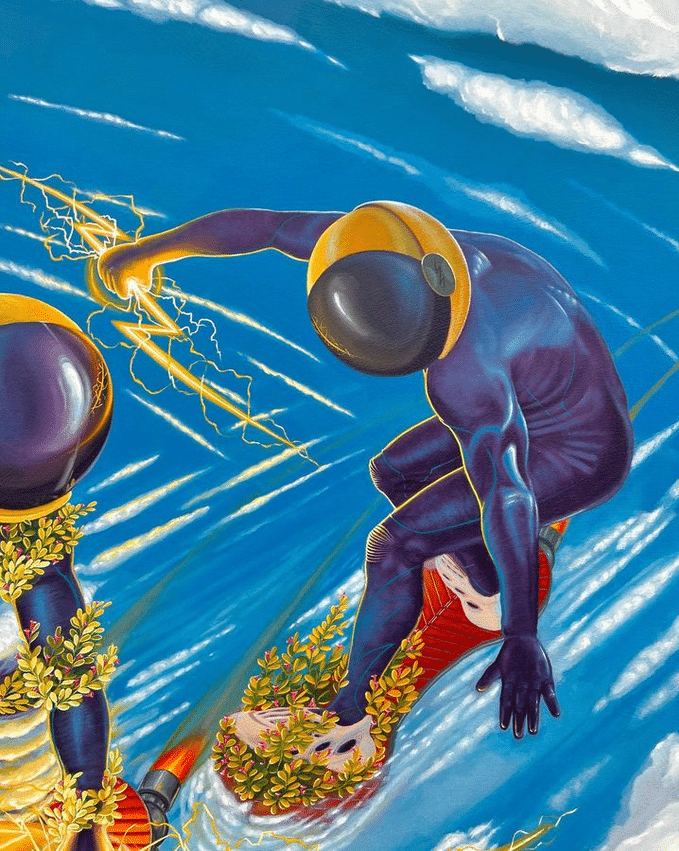 I fell in love with Kenneth’s futuristic, dynamic, and ethereal style. His surreal world, combining machines, natural elements, and hybrid bodies, arouses strong sensations in me and sets my imagination on fire. Kenneth’s works are inspired by his personal life and his perception of the world in social, political, and religious terms.