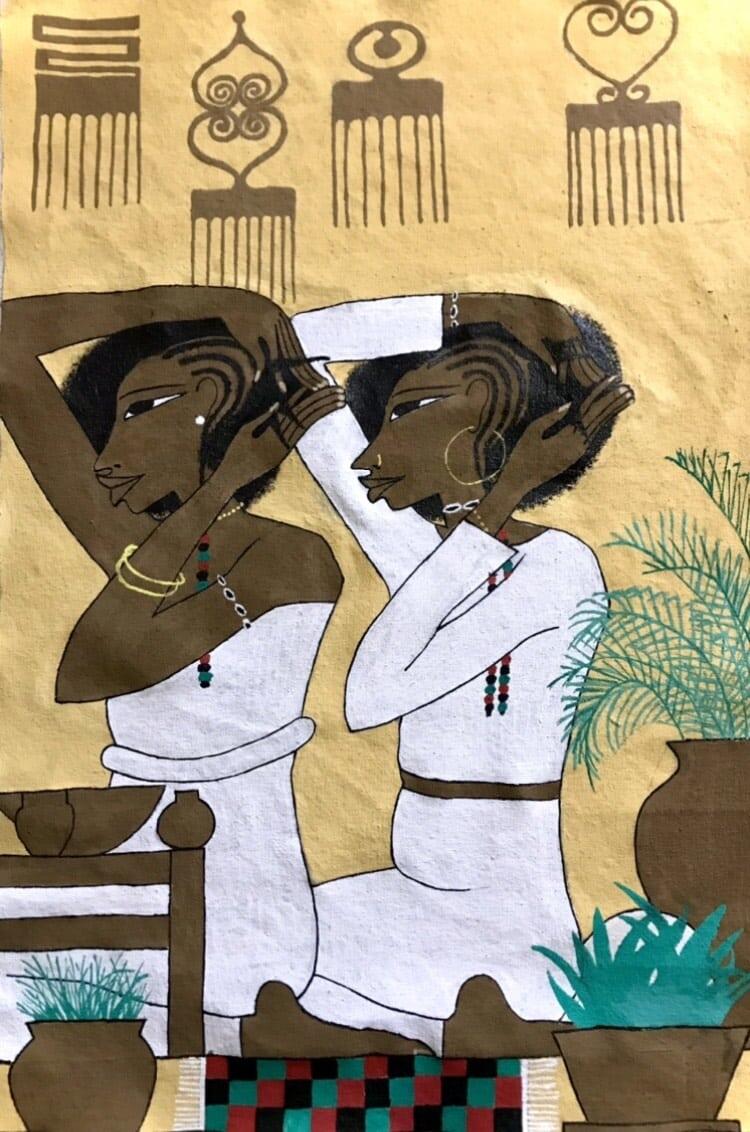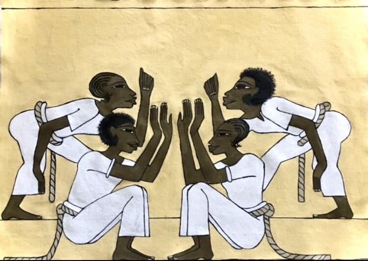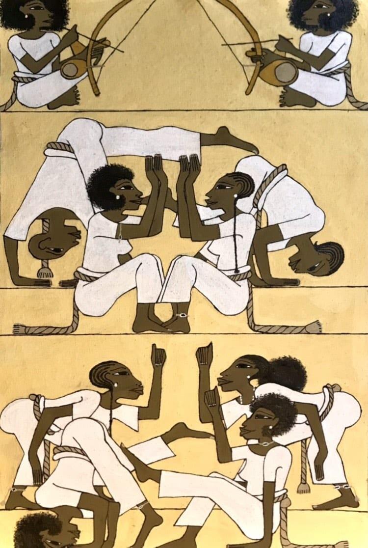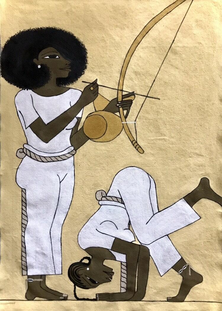 I had the pleasure of discovering Markus, whose works captivated me with their finesse, beauty, and originality, blending elements of Afro-Brazilian culture, notably capoeira, with pictorial elements of ancient Egypt. Markus is deeply attached to his African roots and draws his inspiration from the pre-classical art of ancient Egypt, nature, ancient knowledge (symbols and sacred geometry), memories of his childhood, and his life in society.