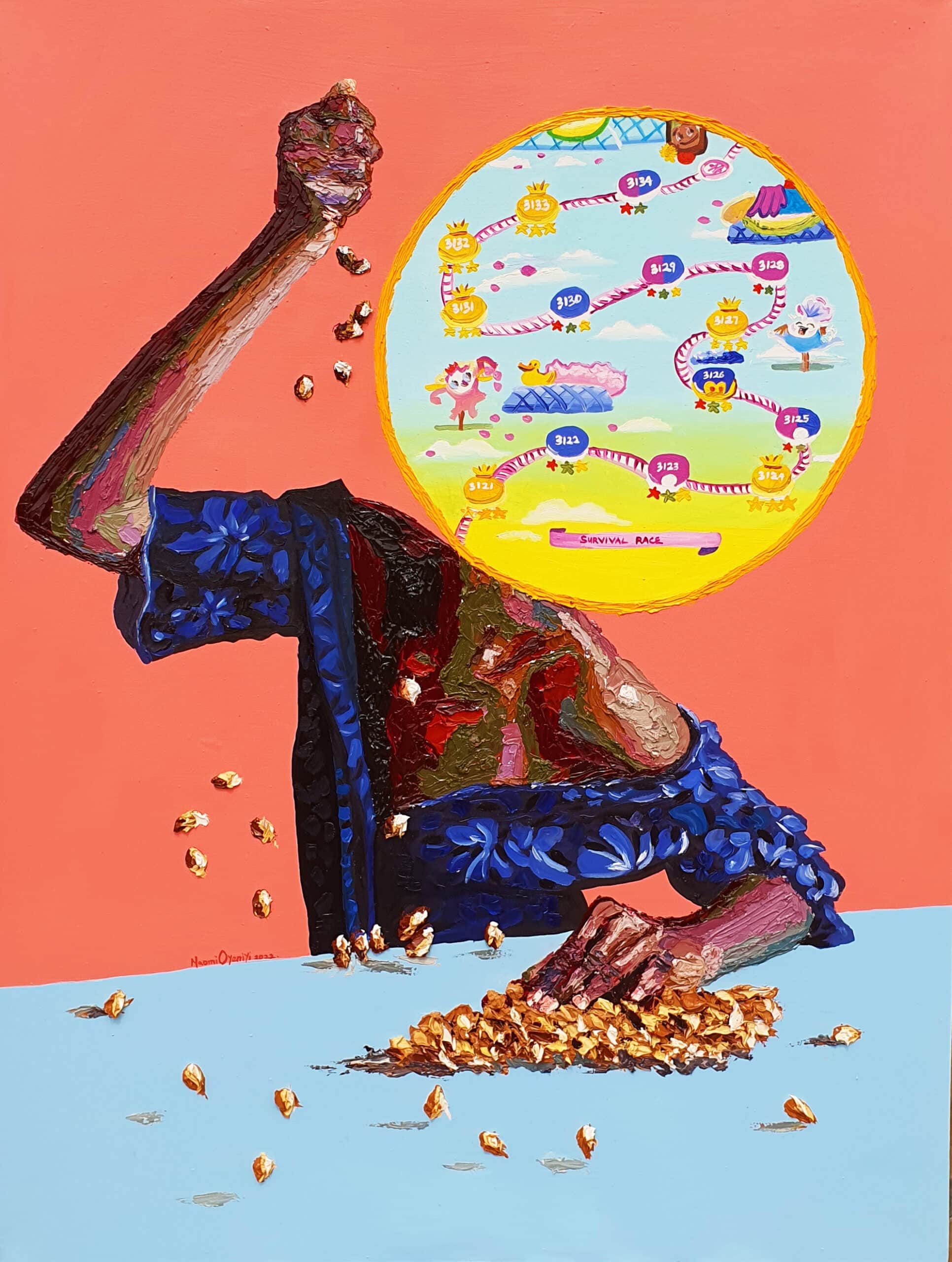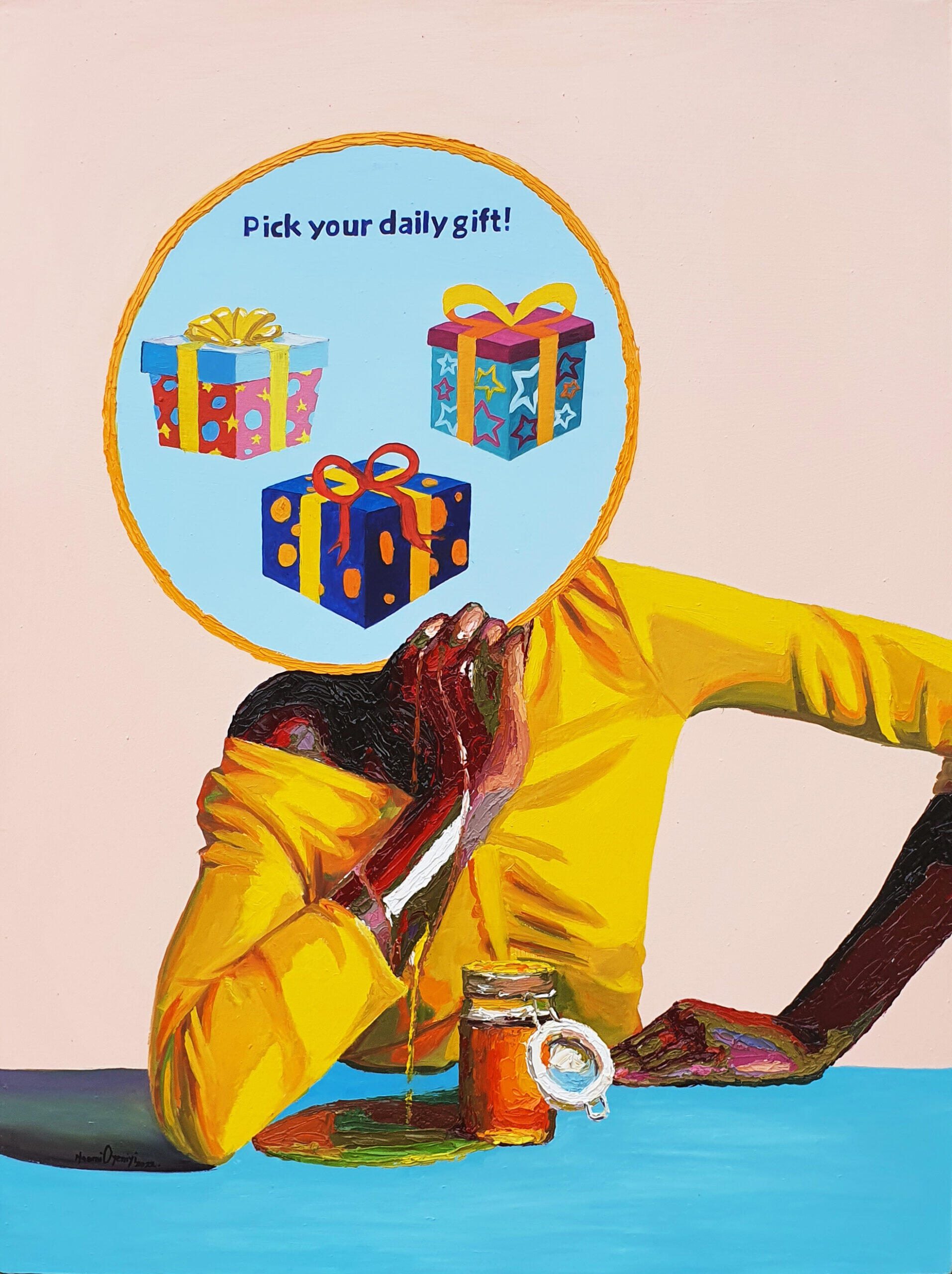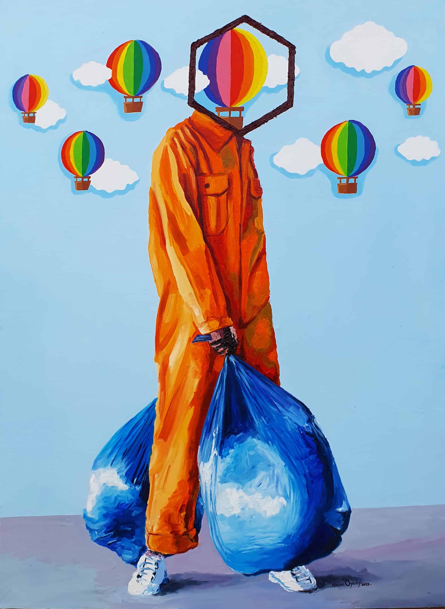 Naomi has been a prolific full-time artist for nine years now. She defines her art as a fusion of personal experiences and inspirations drawn from psychology, spirituality, socio-cultural dynamics, her immediate environment, and her observations of the world. Her technique involves meticulously layering colors with a palette knife, resulting in fractured lines that merge into figurative subjects. She pays particular attention to detail and uses deliberate brushstrokes to strike a balance between realism, impressionism, and surrealism.