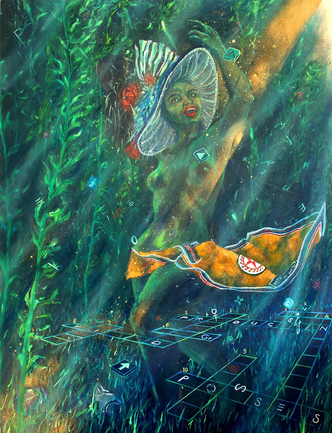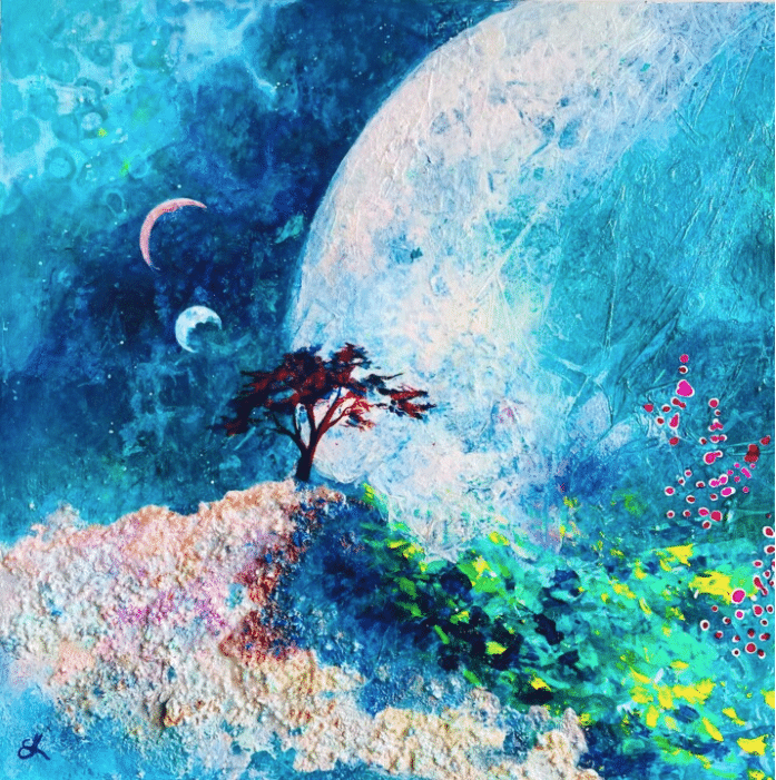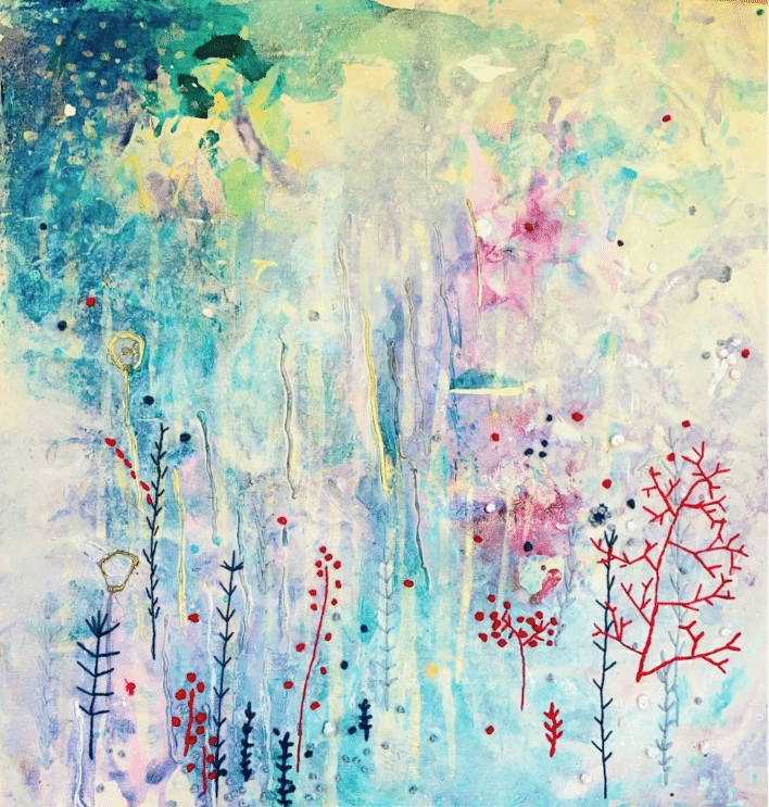 Ngendo, a multidisciplinary artist originally from Kenya and now based in Quebec, creates work that gracefully bridges the worlds she inhabits—geographically, culturally, and emotionally. Though she humbly described her style as still evolving, it’s this very fluidity that makes her voice so compelling. Her practice is rooted in exploring connections: between people and place, memory and material, the seen and the felt. Through a visual language that ranges from symbolic collage to layered abstraction, Ngendo invites us to witness how seemingly disparate realities—joy and struggle, belonging and longing—can coexist within the same emotional landscape.