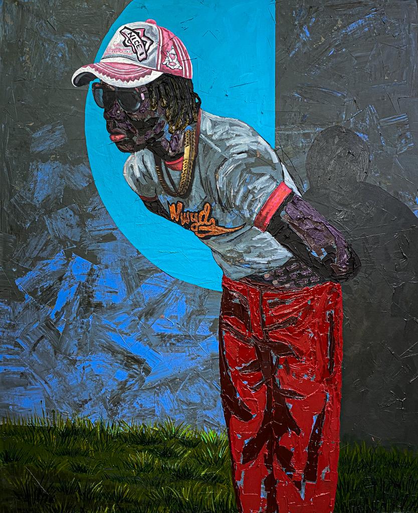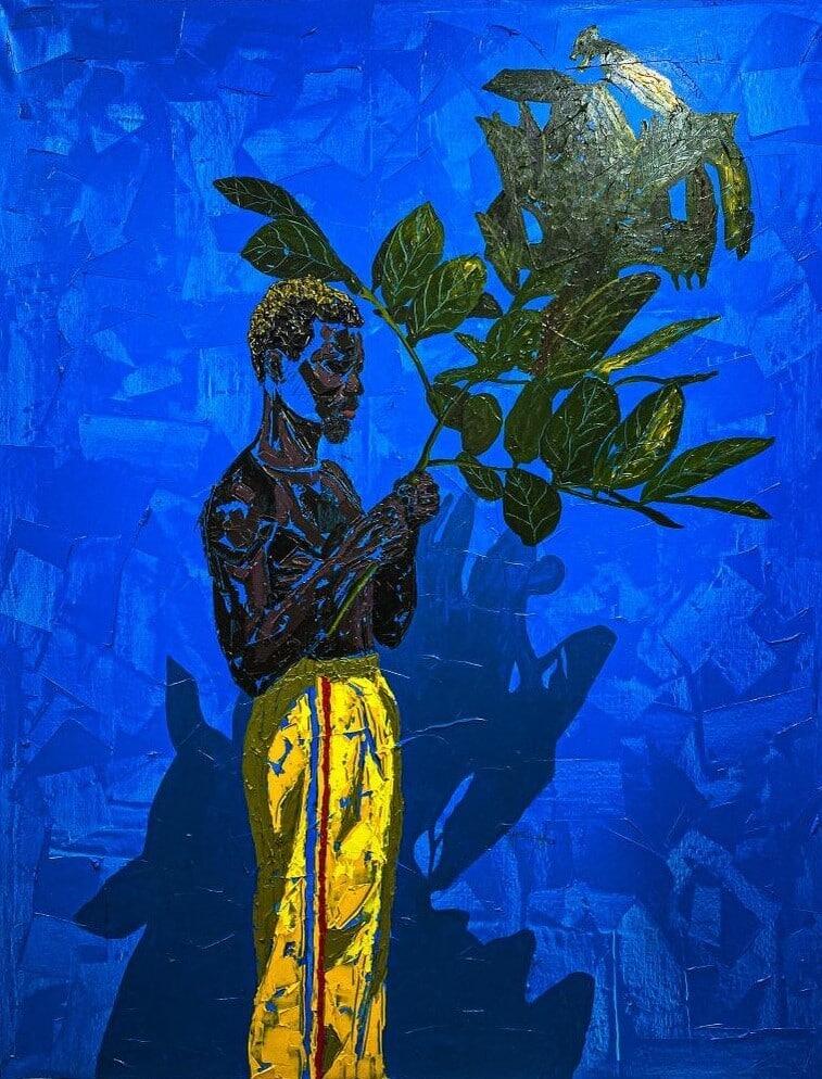 Right from the start, I had been captivated by the beauty and texture of Selorm’s artwork on Instagram. While watching videos of him painting, I realized he didn’t use brushes, but cards. Wait a minute… Cards? The description of one of his pieces then confirmed it for me. Indeed, Selorm paints with credit cards, telephone cards, broken rulers, or plastic cards he cuts out himself. How could I not contact such a phenomenal artist?