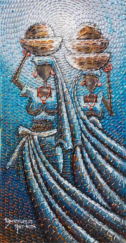 Born in Port Harcourt and raised in Lagos, Uchechi Gift Udochukwu is a Nigerian mixed-media artist whose work weaves together culture, symbolism, and emotion to celebrate African identity in contemporary form.