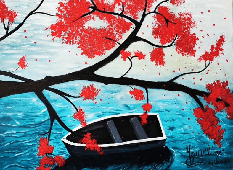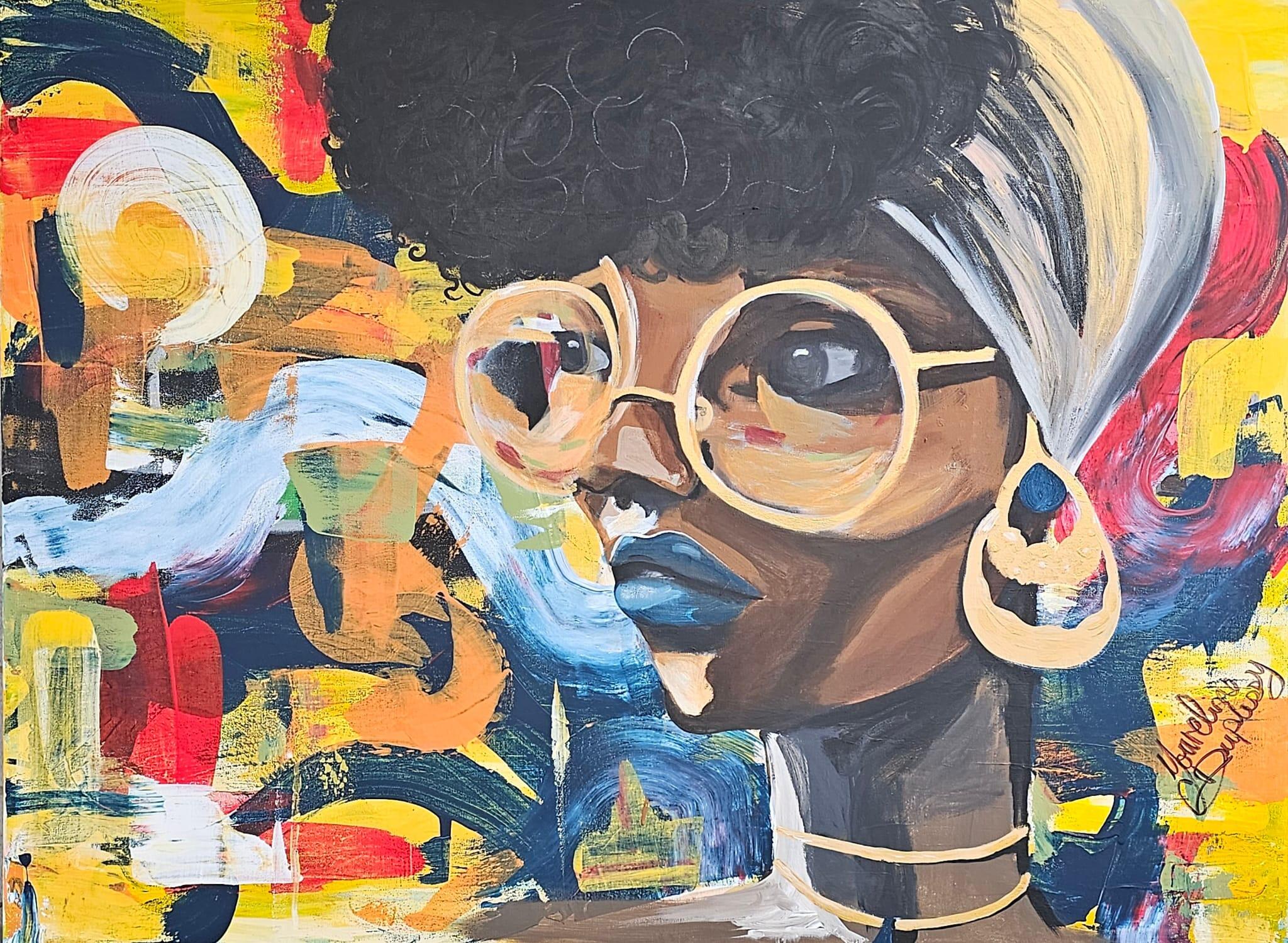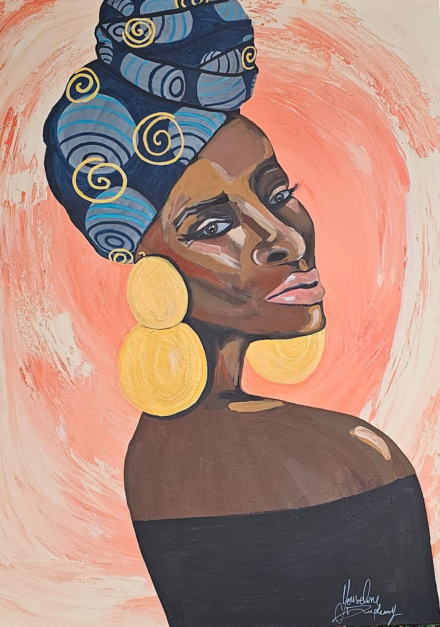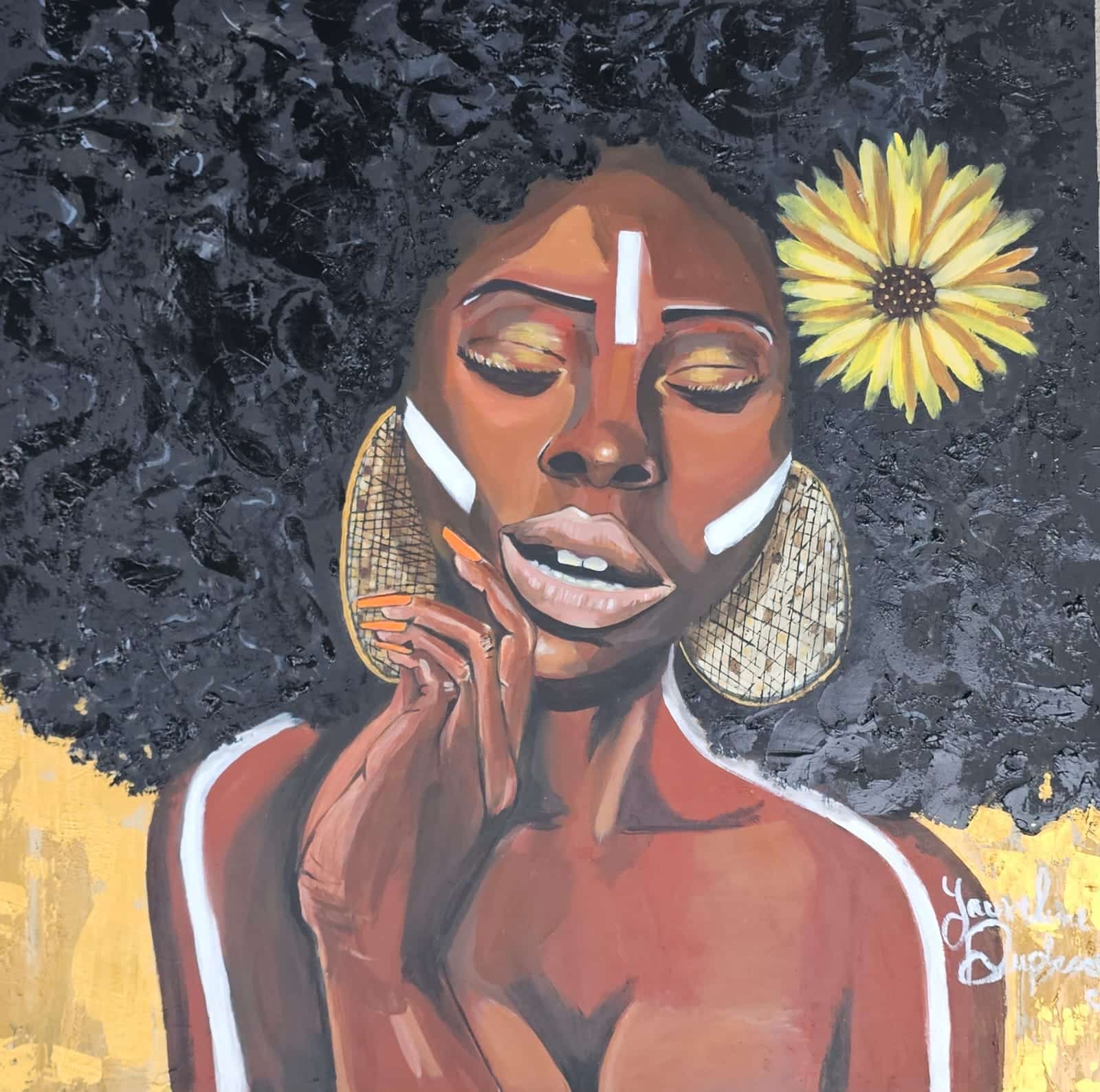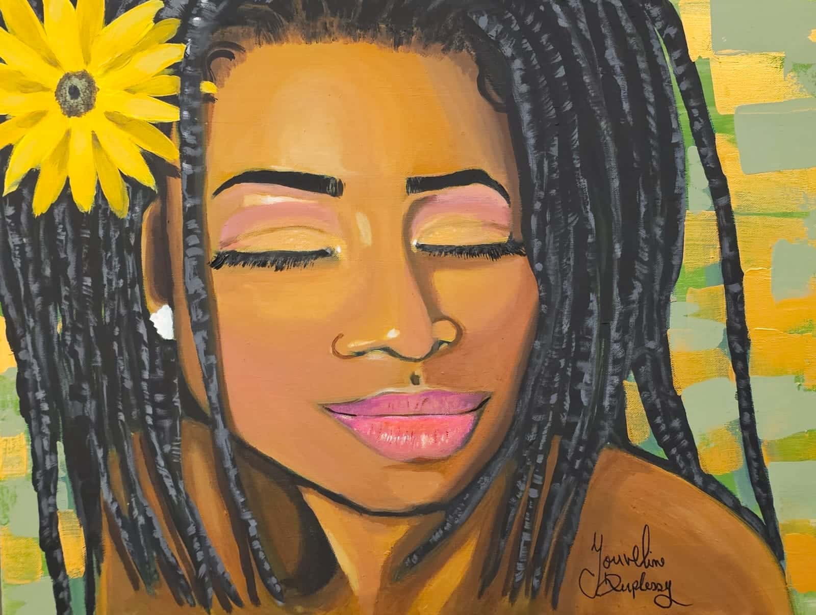I met Youveline at a well-known Montreal event, the Haïti en Folie Festival (in July 2023), which aims to showcase Haiti’s cultural diversity, splendor, and richness. Youveline was a guest artist there. She was painting a magnificent piece live when I spotted her. Naturally, her performance drew me over like a magnet. I watched her for a few minutes as she was immersed in her creative world. And as soon as she took a break, I jumped on the occasion to speak with her.