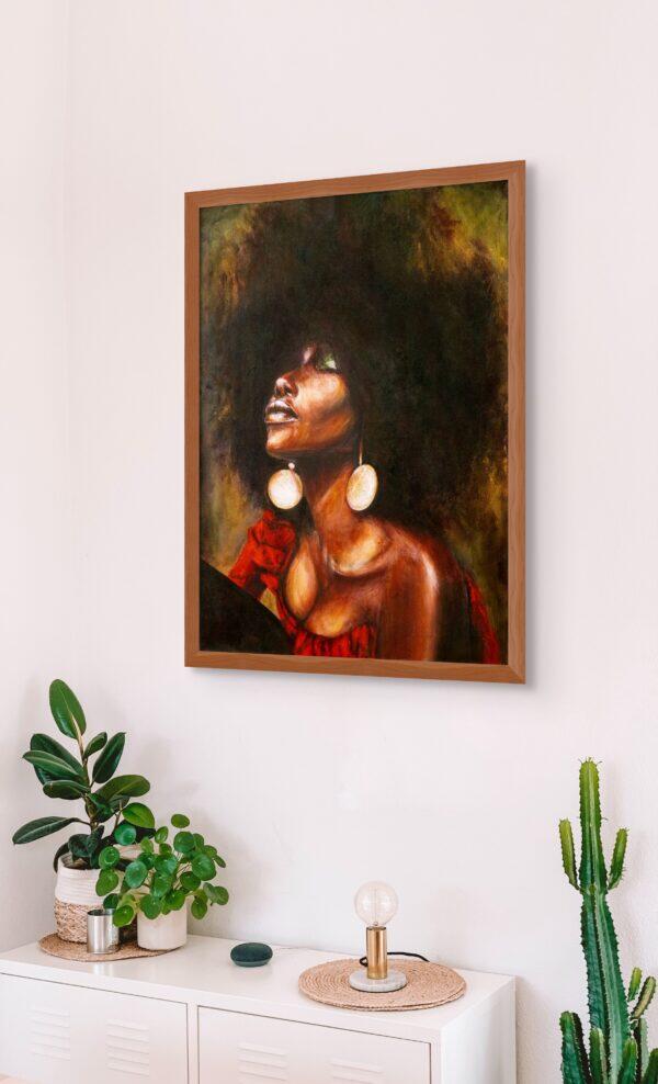 By illustrating the grace and calmness of a black queen, you not only honor the strength and resilience of black women but also challenge conventional norms and stereotypes. This portrayal not only reflects personal experiences but also contributes to a broader conversation about representation and inclusivity in art and society. This painting is a testament to the beauty of embracing one’s heritage and identity with pride, and it carries a message of empowerment and self-confidence.