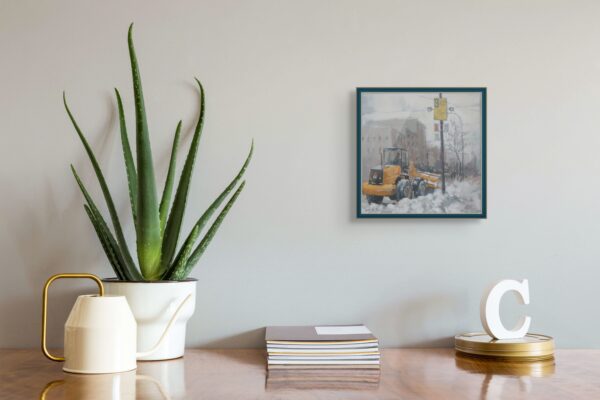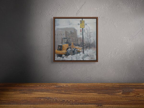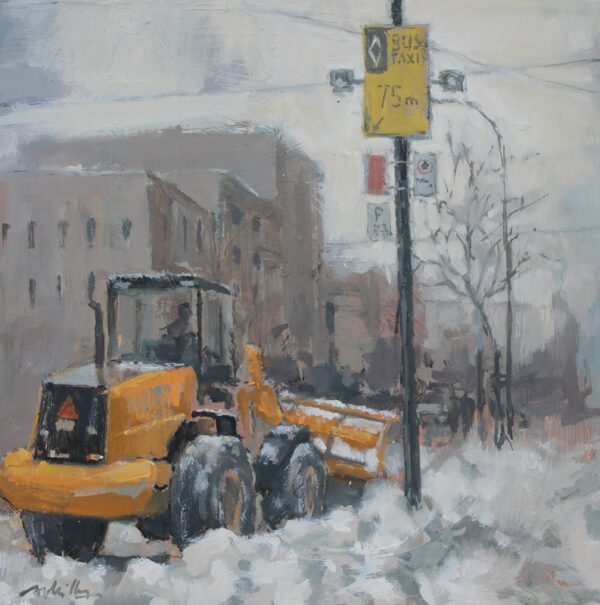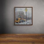 In this quiet winter scene, Achilles transforms an ordinary urban moment into a meditation on resilience. The muted palette and softened light seem to absorb the noise of the city, leaving behind a landscape suspended between stillness and renewal. The lone machine clearing the snow becomes almost symbolic—a silent gesture of perseverance against the weight of winter. Through his restrained light and weathered textures, Achilles invites us to see beauty not in spectacle, but in the quiet dignity of everyday life slowly finding its rhythm again.