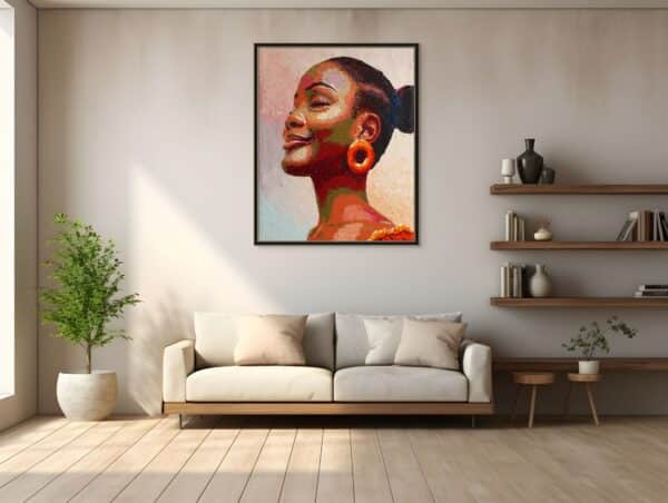 Ṣùkú hairstyles, known for their elegance and sophistication, have adorned the heads of African women for generations. This painting captures the beauty of the Ṣùkú style and the regal pride it evokes. The portrait highlights the grace and poise it bestows upon those who wear it, showing that Ṣùkú is more than just a hairstyle—it is a crown of timeless elegance and cultural pride.