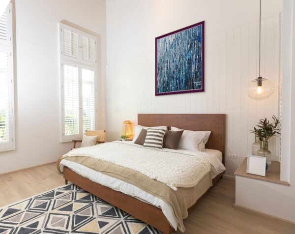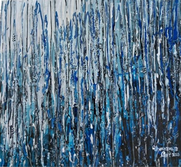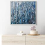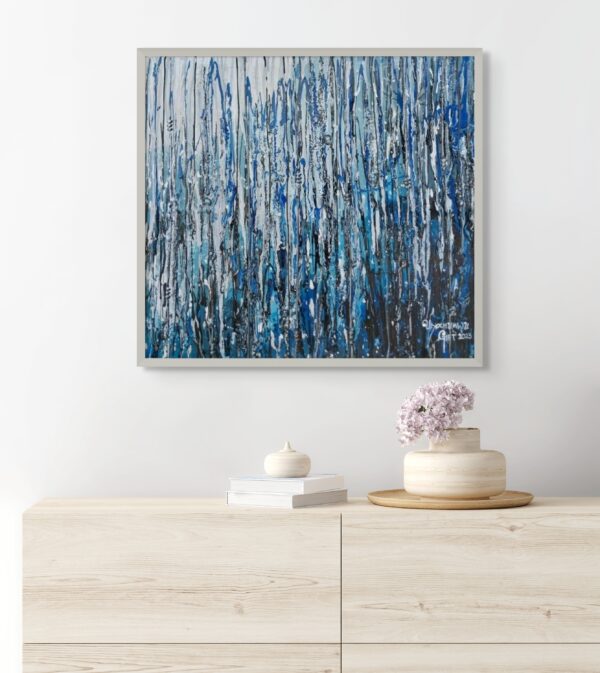 Deep, vibrant shades of blue dominate this mesmerizing abstract painting. Fluid brushstrokes and layered textures create a sense of depth, evoking the vastness of the ocean or the serenity of the sky. Hints of lighter tones and subtle contrasts add movement and emotion, inviting the viewer into a dreamlike, meditative space. The composition exudes tranquility, mystery, and boundless imagination.