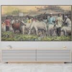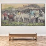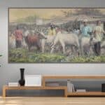 As the farmers ready their cattle for the market, the painting reflects the timeless bond between nature and livelihood, showcasing the hard work, tradition, and community spirit that form the foundation of rural life. It’s a tribute to the resilience and dedication of those who sustain their families and local economies through this age-old practice.