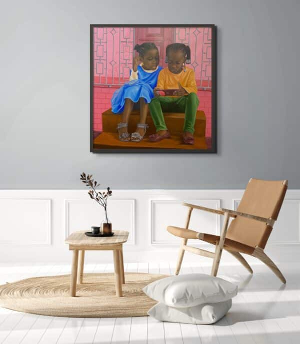 Finding Embers is more than just a painting – it’s a tribute to the beauty of childhood, a celebration of the magic that unfolds when young minds and hearts connect. This enchanting work reminds us to cherish the simplicity, wonder, and innocence of childhood, and to nurture the embers of imagination that burn within us all.