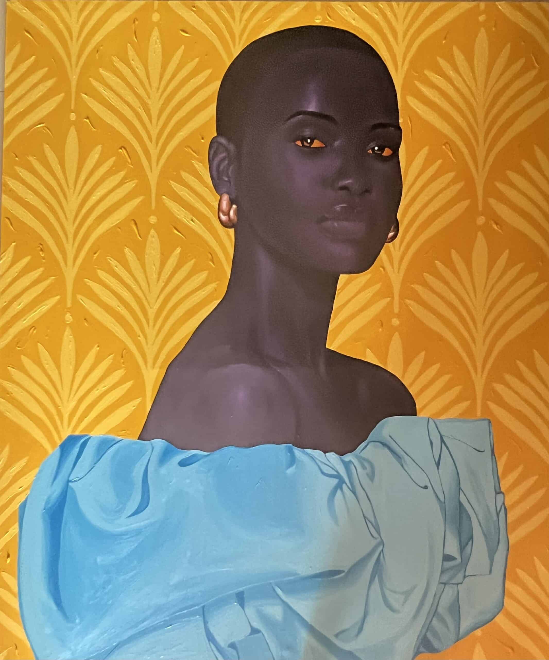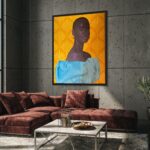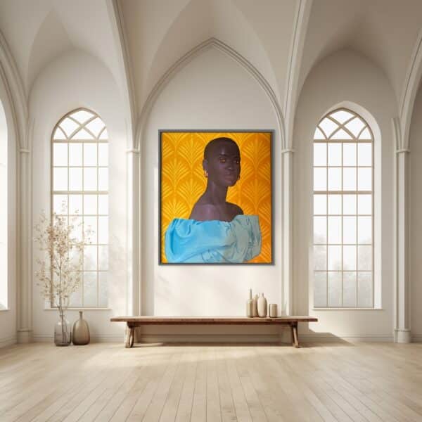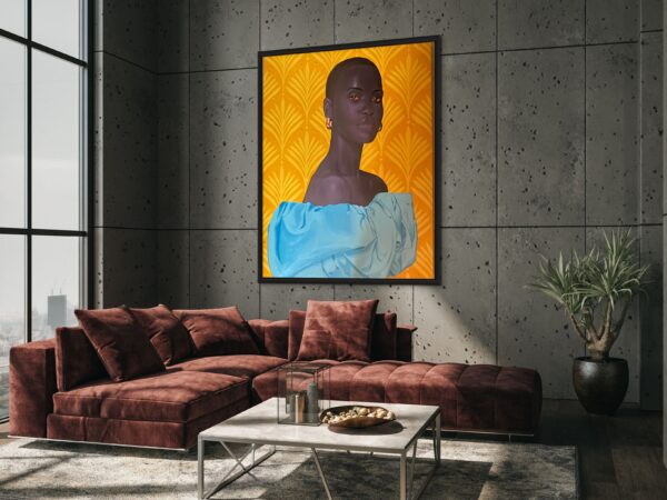 This artwork portrays a stunning woman from Kumasi, the capital city of the Ashanti Region in southern Ghana. In this city, she is admired not only for her rare and captivating beauty but also for her gentle and kind nature. Her external allure and internal grace are so remarkable that she is often regarded as a goddess. In Kumasi, people cherish and look up to her, seeing her as a symbol of both beauty and strength.