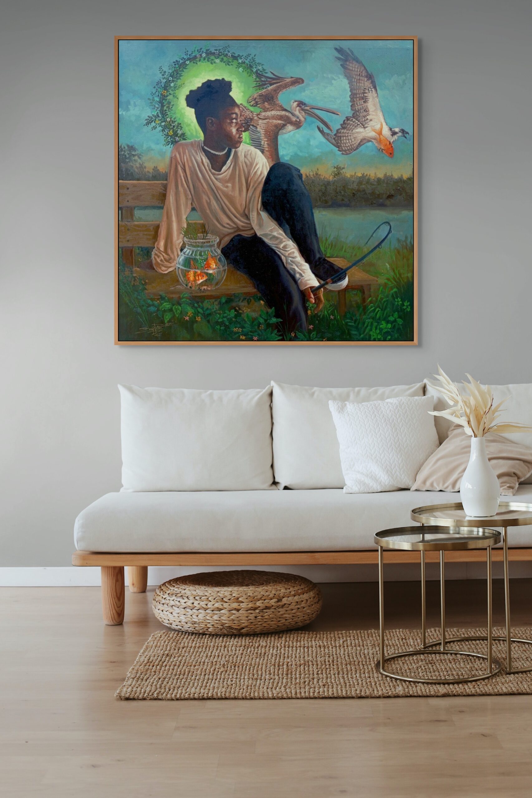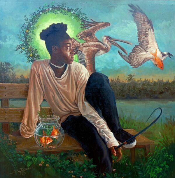 It carries a subtle message: dreams are valid, but many are fishing the same lake. You either pursue or risk being overtaken by more relentless competitors. Yet, in the midst of this beautiful chaos, the central figure remains unperturbed—confident in her uniqueness, quietly affirming: