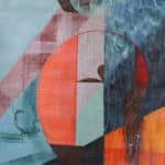 Melt Down (II) features a contorted figure bent backward, its head appearing to melt like wax. The composition is divided into two contrasting sections: one structured and well-lit, the other dark and chaotic. This duality illustrates the internal conflict between order and emotional disintegration.