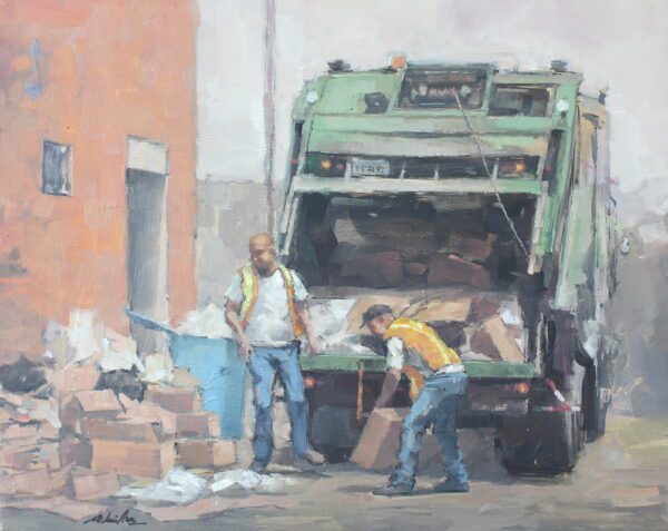 The day begins quietly, long before the city fully awakens. Two workers move through the remnants of yesterday, gathering what has been left behind and restoring order to the rhythm of the street. In the muted light of early hours, their gestures carry a quiet dignity, transforming an overlooked routine into a moment of human presence and purpose. What might seem ordinary reveals itself as something deeper: the silent labor that keeps life moving forward, one small act at a time.