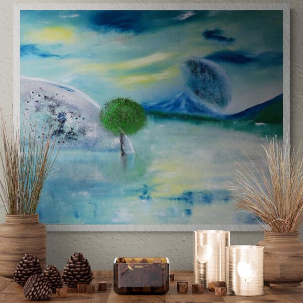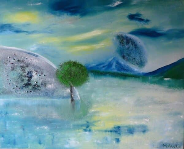Here’s a new piece coming straight out of my imagination. While creating it, I had the impression that the artist in me was simply materializing a parallel world in which he lives and from which he draws his inspiration.