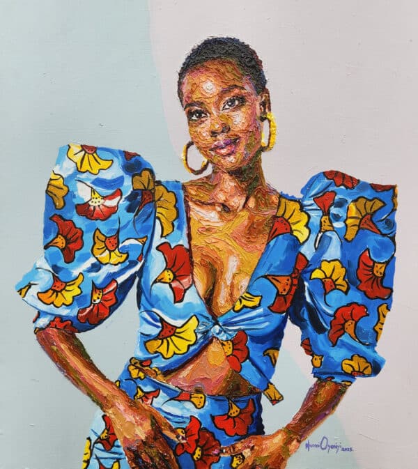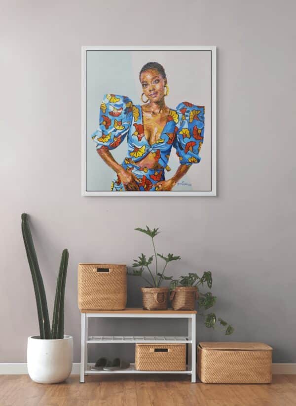 Radiance in Bloom is a celebration of self-expression, individuality, vibrancy, and effortless confidence. She stands not just as a figure, but as a living testament to resilience—rising above her struggles and failures with quiet strength. She dusts herself off and shines, wrapped in the rich tapestry of African culture, wearing her smile like a crown, no matter what life brings her way.