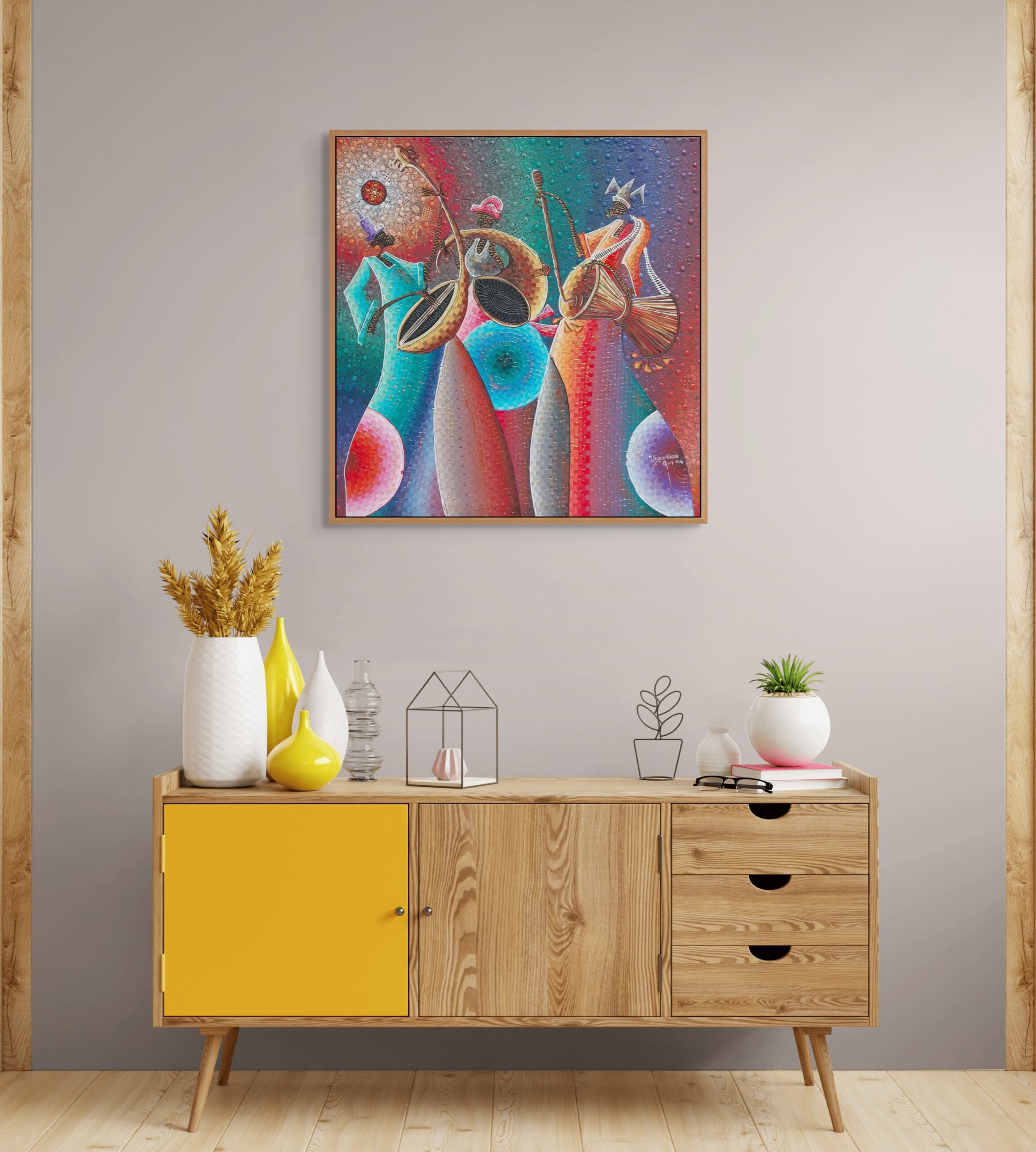 Celebrating unity, heritage, and collective identity, this painting transforms abstraction into a powerful narrative—where rhythm, tradition, and visual harmony converge.
